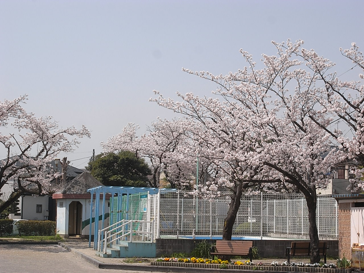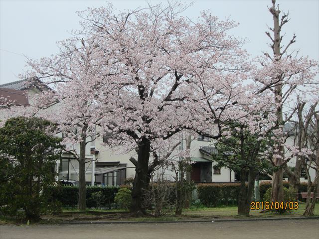 公園で遊ぶ子供たちがいて賑わっていますが、桜の花は開花が遅く淋しい限りです。