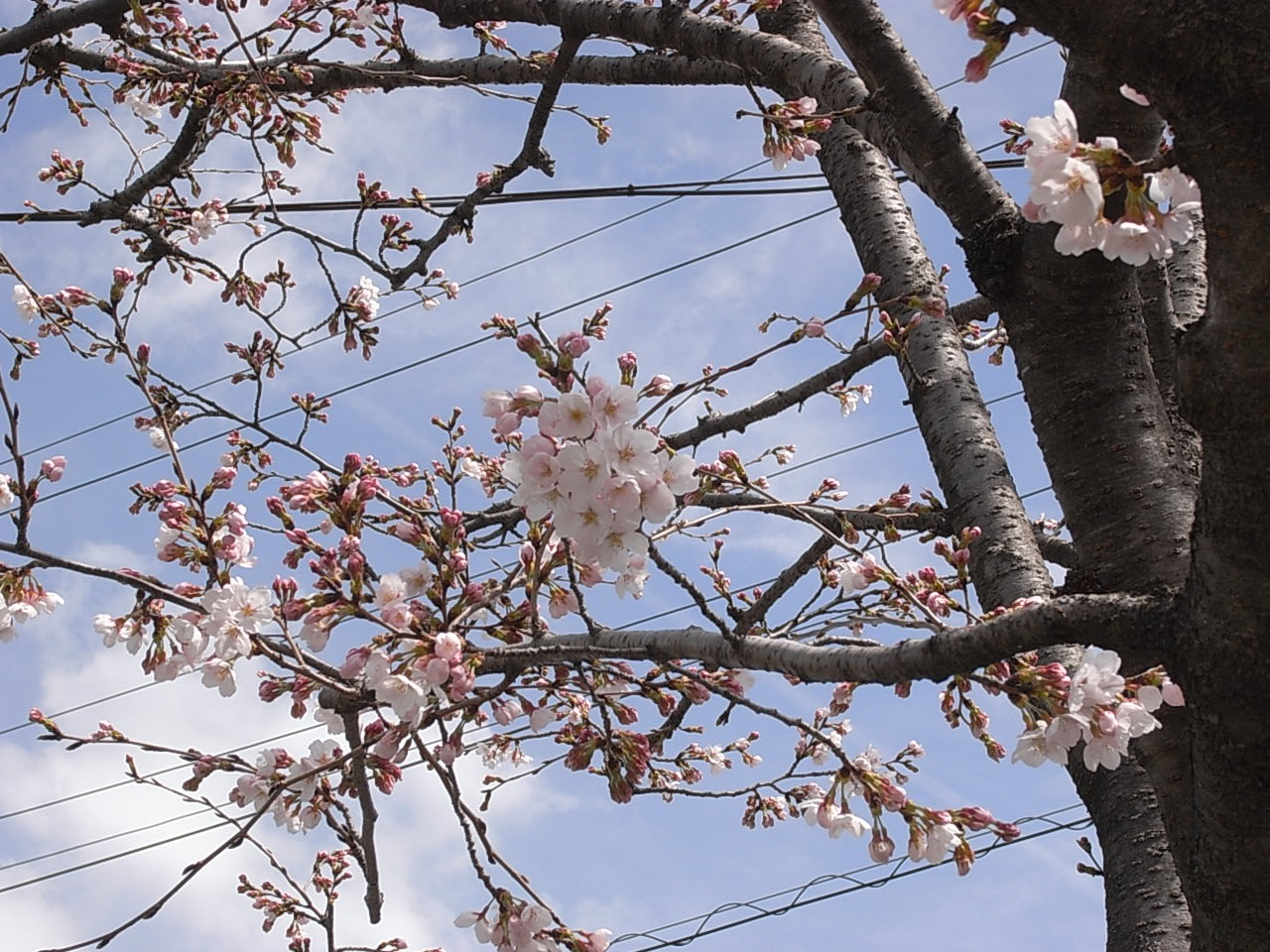 曇り空ですが気温は順調に上がり、2分咲きぐらいです。