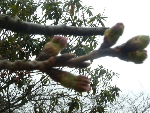 霧雨が降り肌寒い一日となりましたが、蕾はかなり膨らんできました。