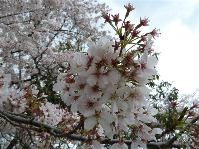 いまにも降り出しそうな曇り空ですが、和やかにお花見をする方たちで賑っていました。