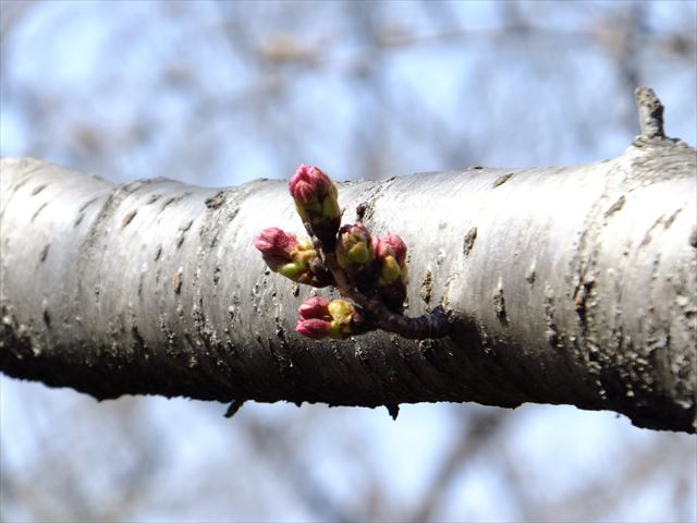 今年も桜の開花情報を始めます。気温上昇で蕾が膨らんでいます。