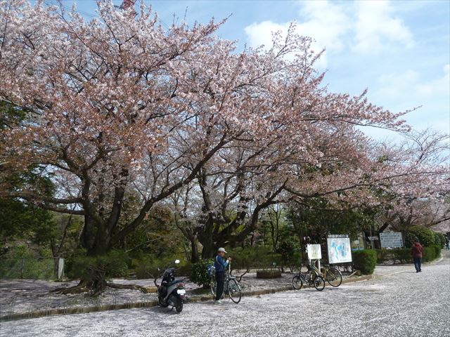 いい天気で暖かいです。訪れる人は多いですが、桜の花は残りわずかとなりました。 運動公園の桜情報は本日で終了させていただきます。また来年もお楽しみに。