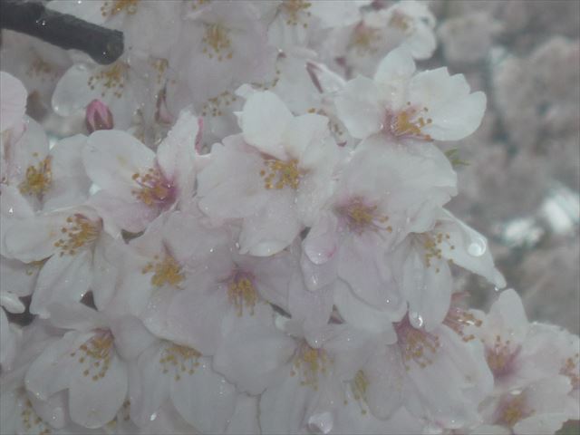 雨降りで肌寒いですが、花見をするのに十分な桜がまだ咲いています。