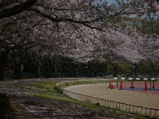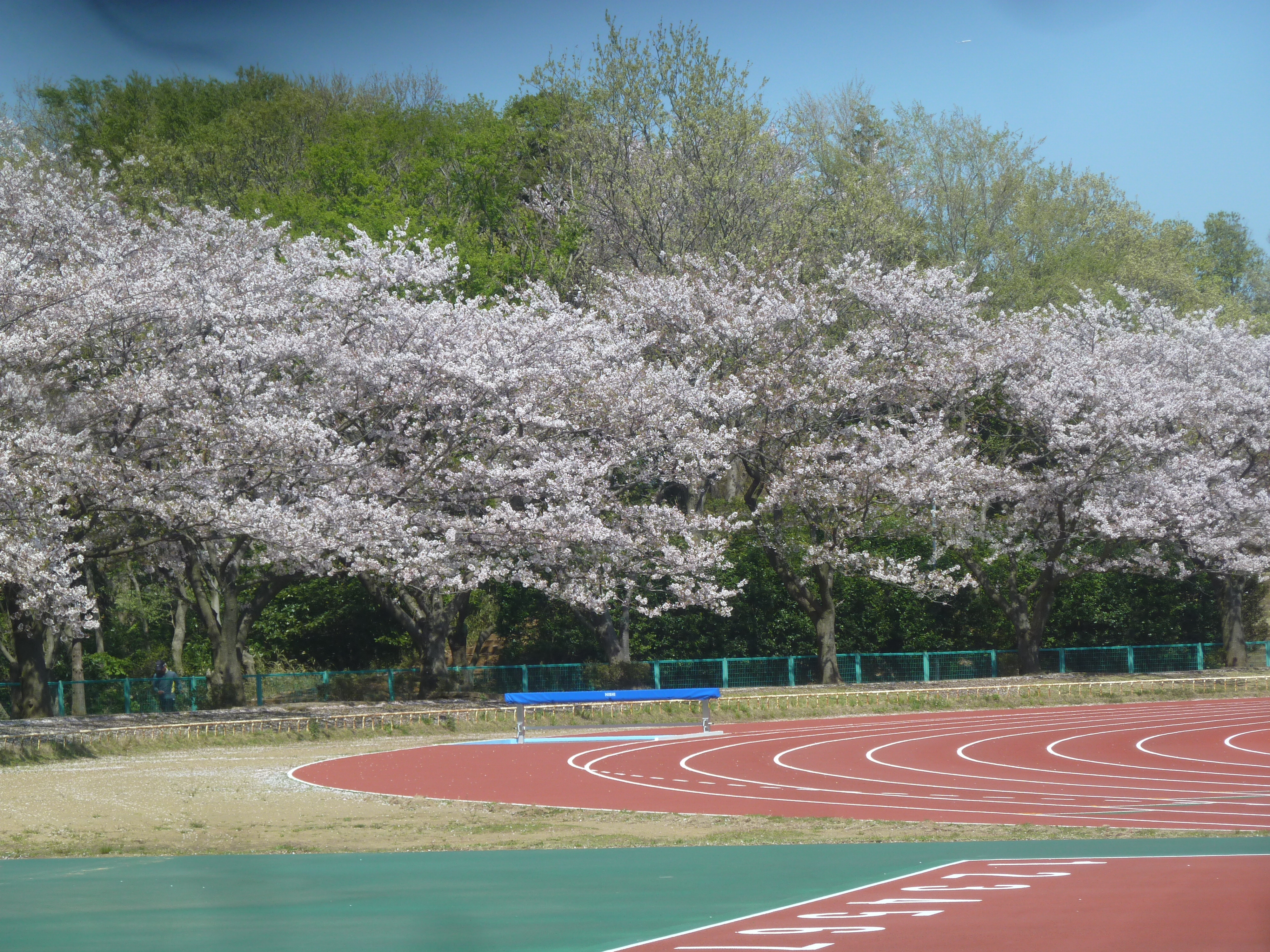 陸上競技場の桜は咲きだしが遅かったため多くの花が咲いていました。