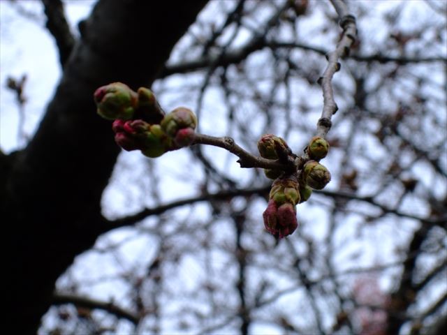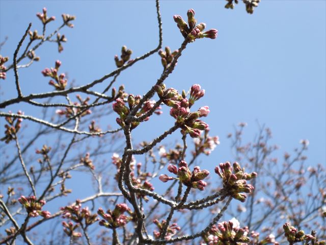 各地で開花宣言がでていますね、運動公園の状況は蕾が膨らんできました。