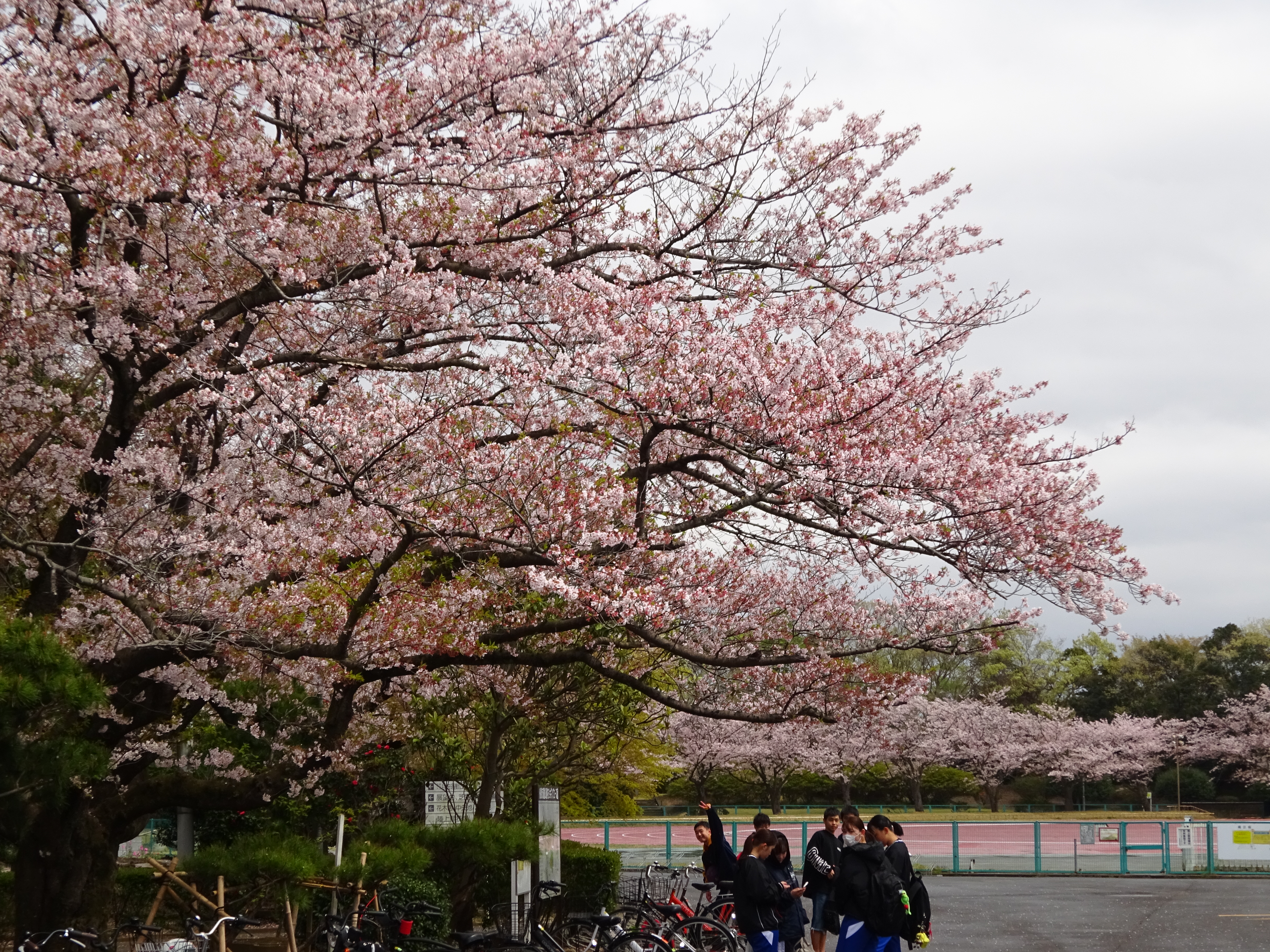 グラウンド側の桜はまだ散りきっておらず、綺麗です。