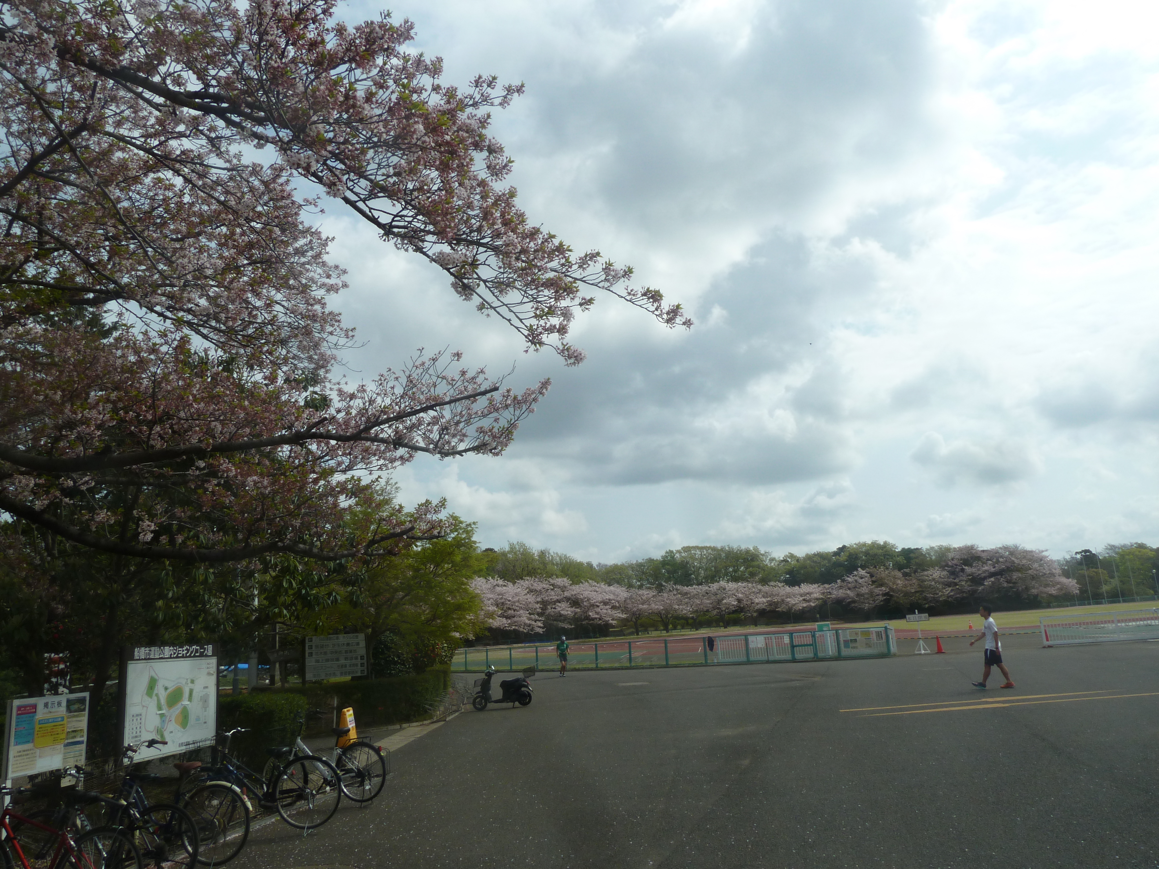 運動公園の桜はかなり散っていますが、グランド側はまだ見頃です。