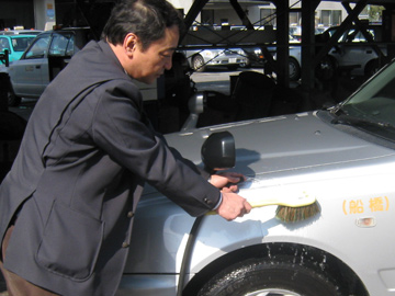 同乗教習 先輩乗務員との同乗教習を行い、車両点検、無線・カード決済機・料金メーターの扱い方、各駅のルール、安全運転の仕方、狭い路地、お客様の接遇、乗務記録のとり方等の実務の習得をします。 |