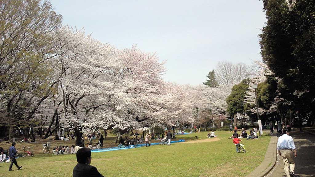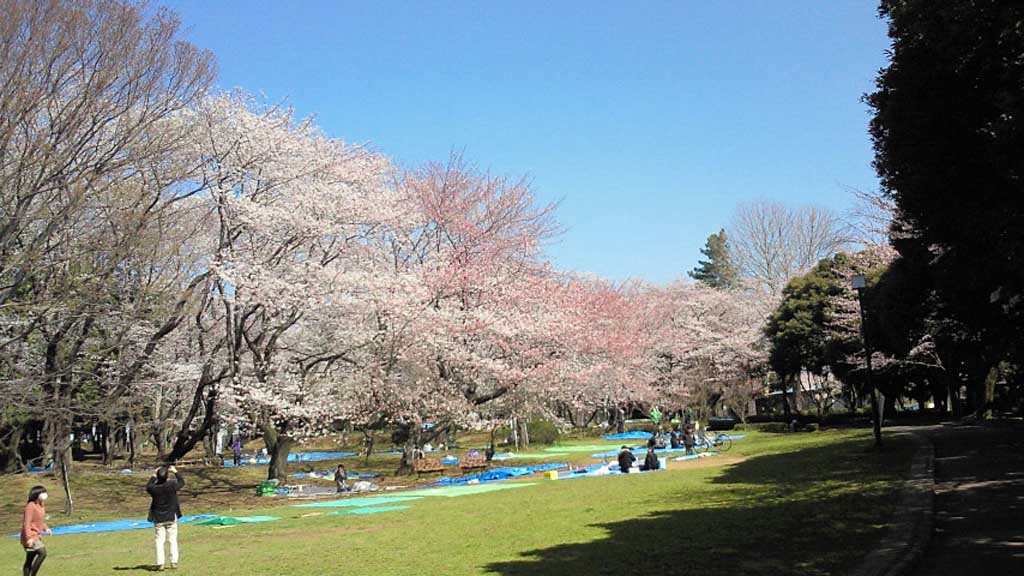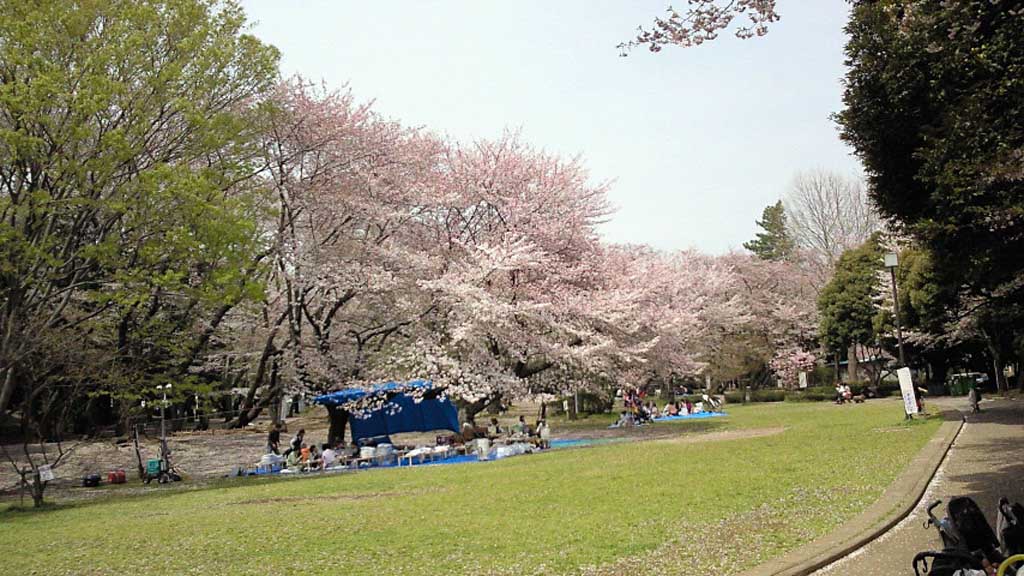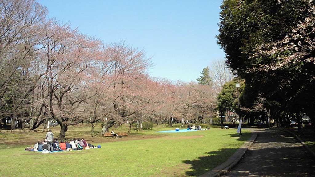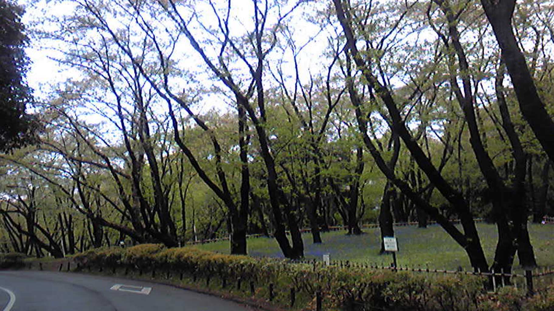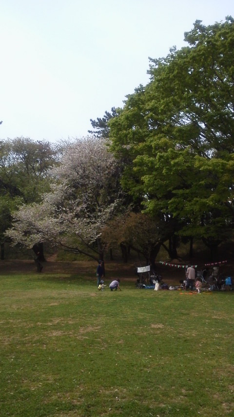 桜の花はすっかり散ってしまいましたが、シートを広げている人たちがいます。お天気がいいのでピクニックですかね。