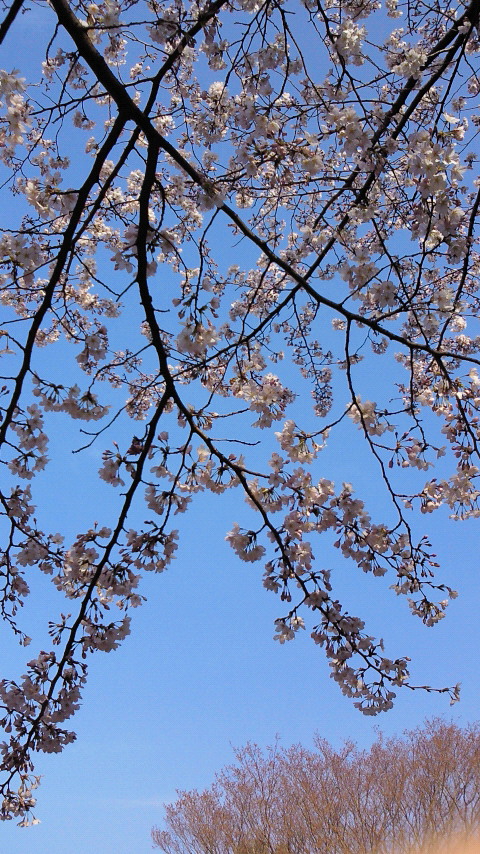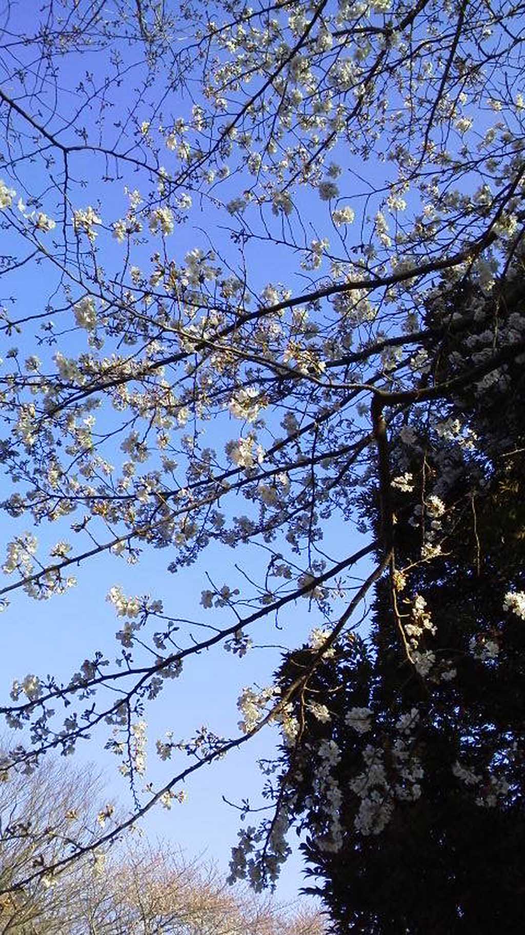 見上げれば、一面の青空とピンク色の桜達が太陽の光にそそがれていて、春っていいですね。