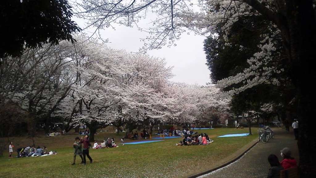 昨日の雨と今日の風で、桜がたくさん散ってしまいましたけど、大勢の人がお花見を楽しんでいます。