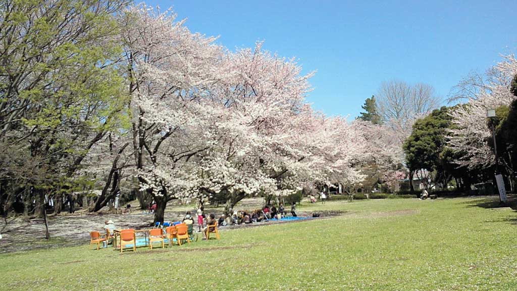 すこしだけ残った桜の下で、お花見を楽しんでいます。