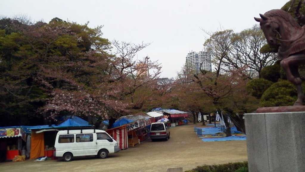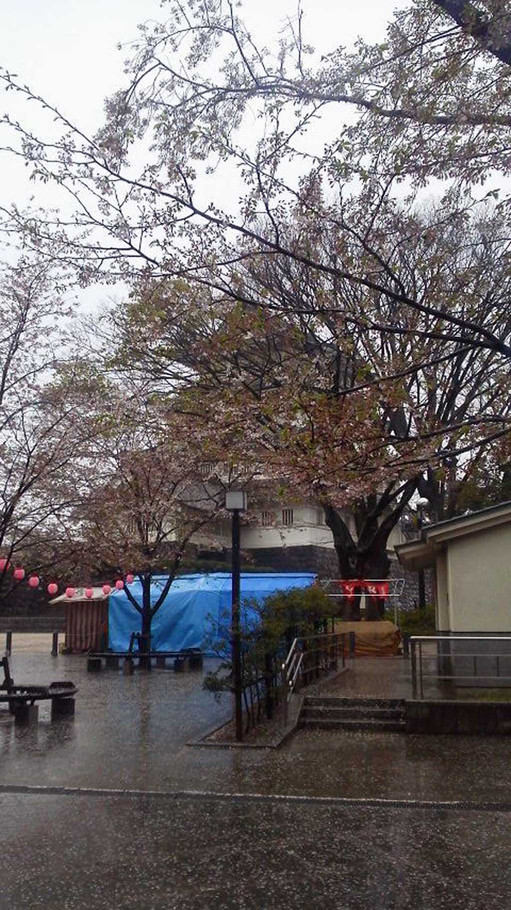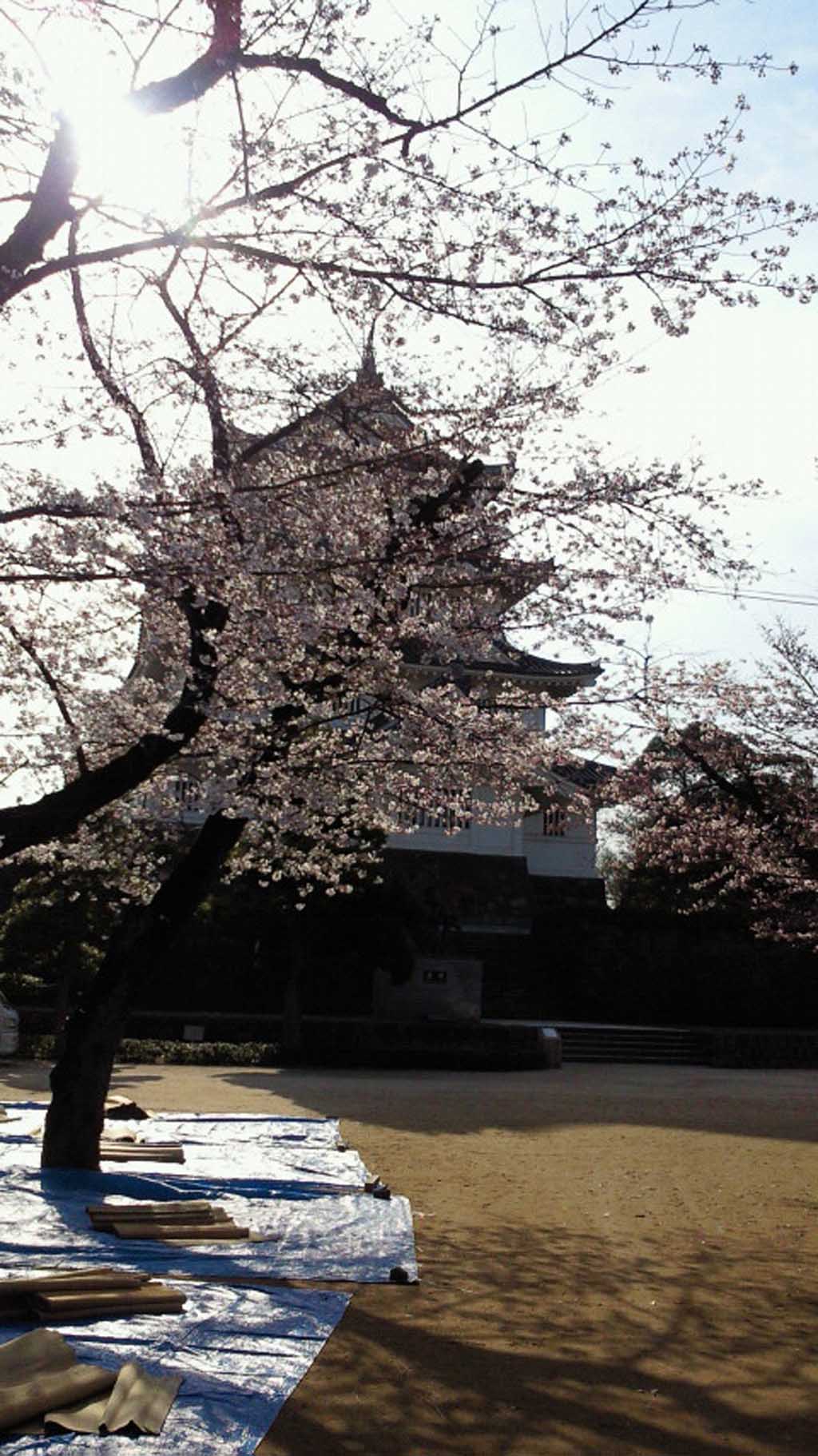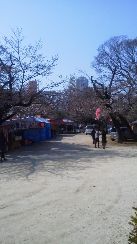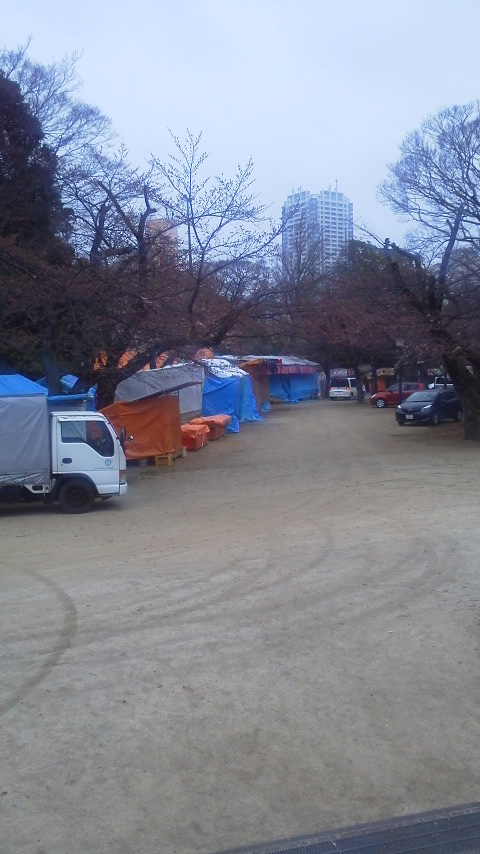 こちらは急いで屋台をならべています!桜、ほぼ満開。