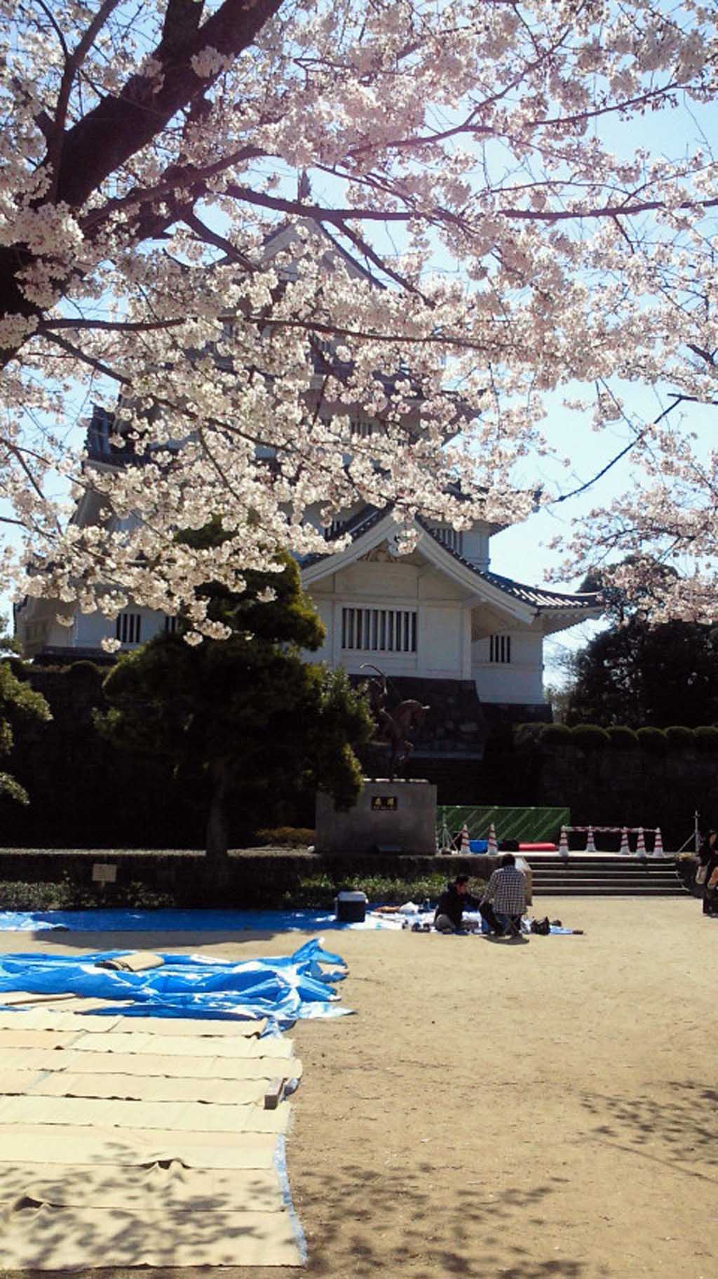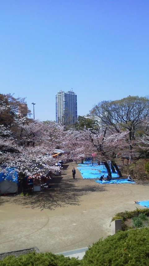昨日の雨でまた散ってしまいました。桜の花は少なくなりましたが、朝からお花見の準備で忙しそうです。