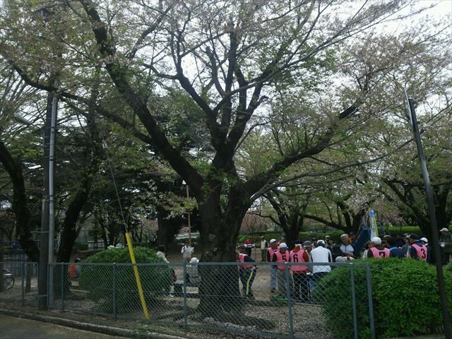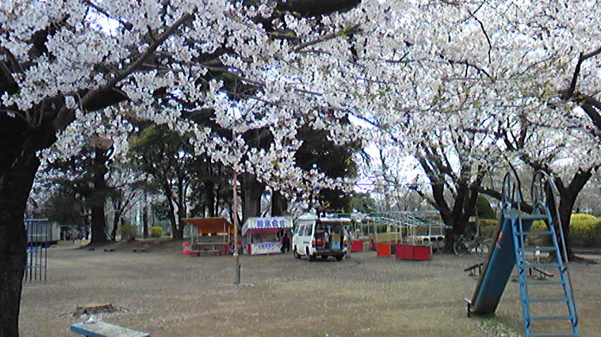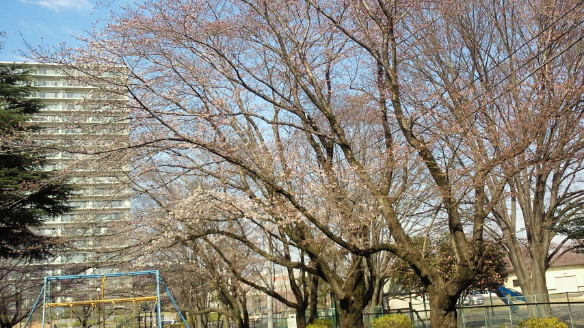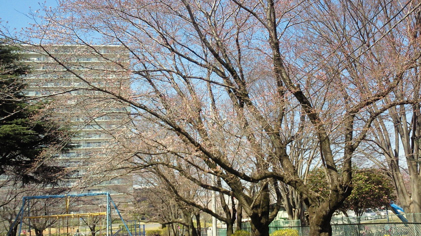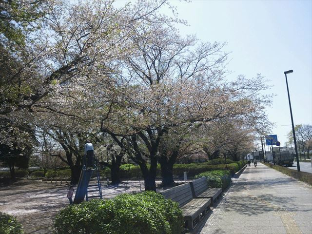 明日には満開になりそうですね!お母さんや子供たちがお花見を楽しんでいます。