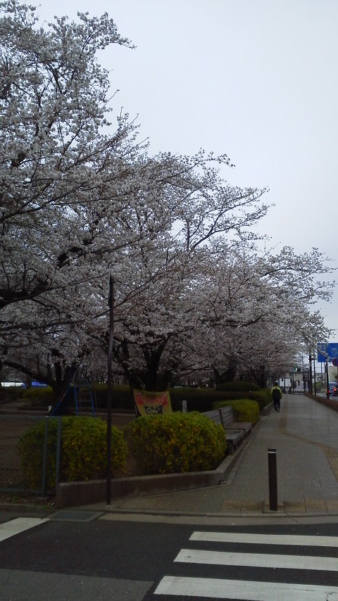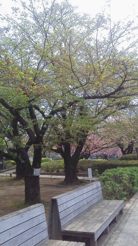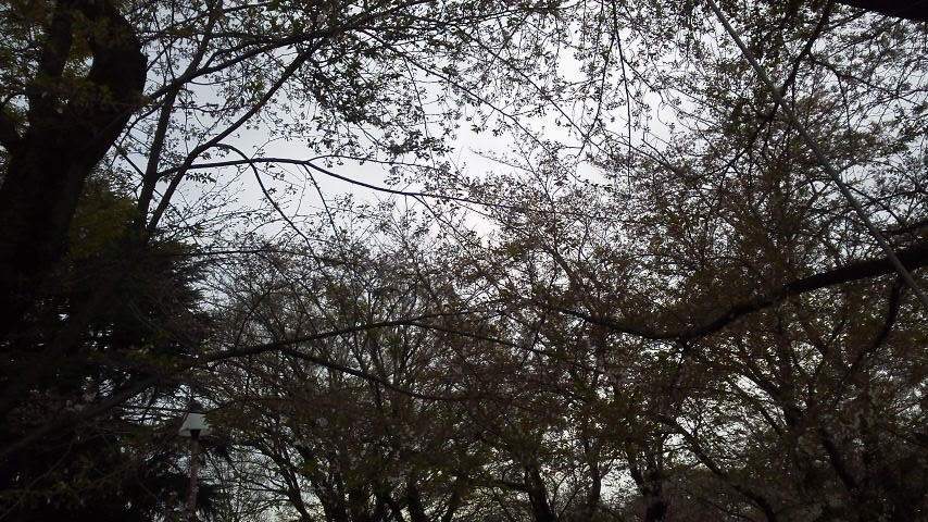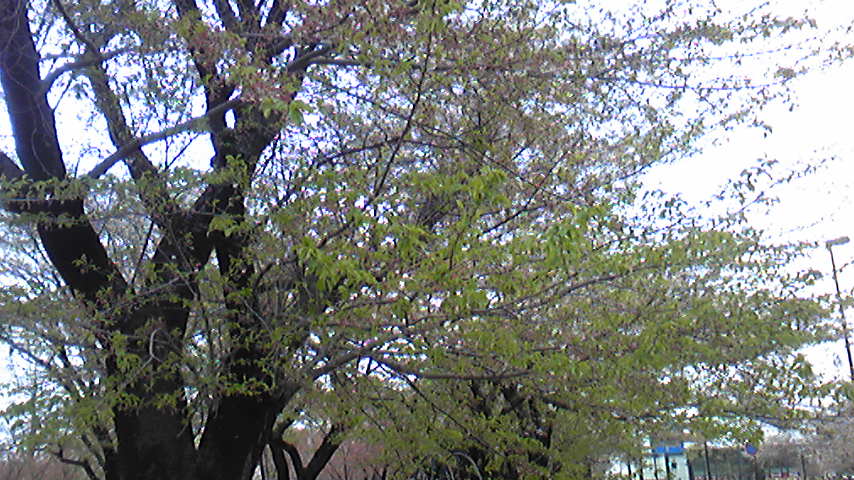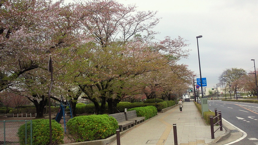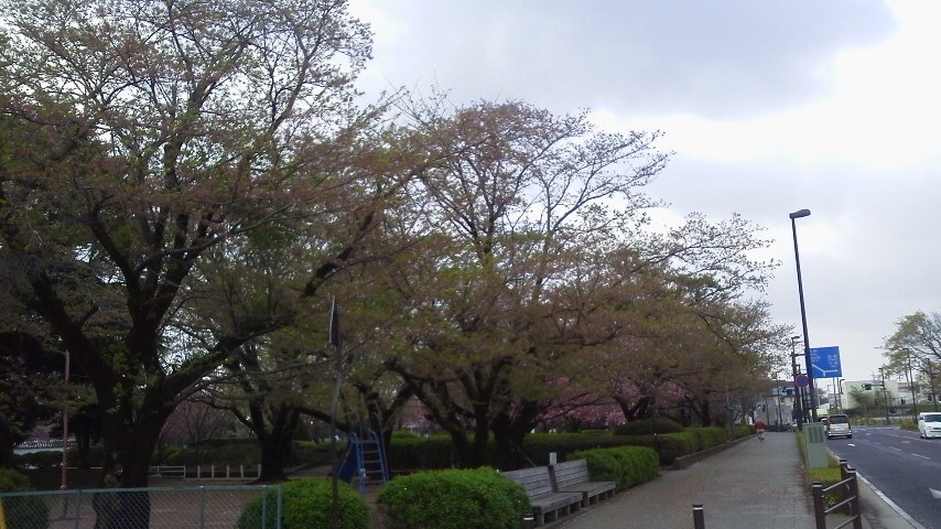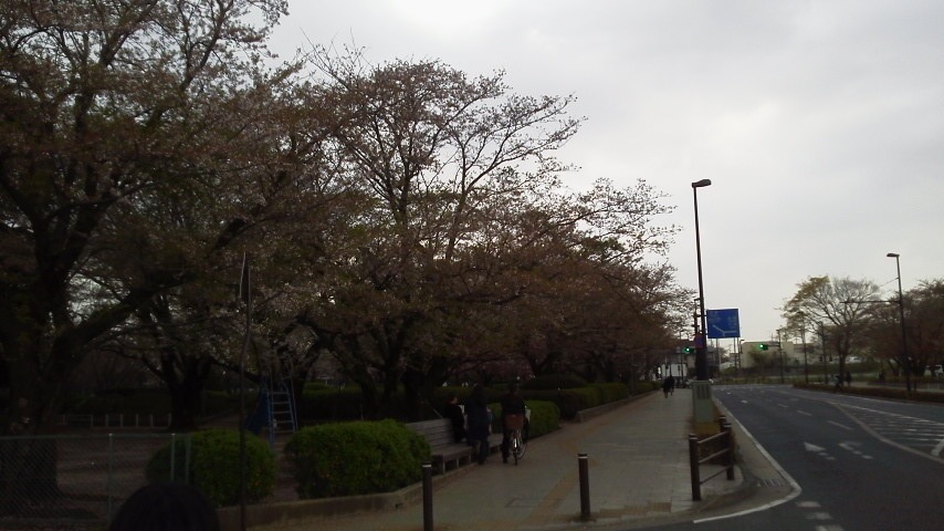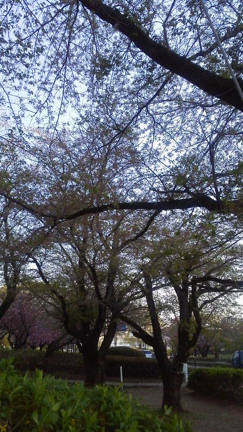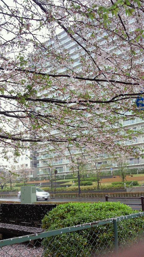 緑がかってきました。歩道に、花びらが・・・。本日は、肌寒いです。