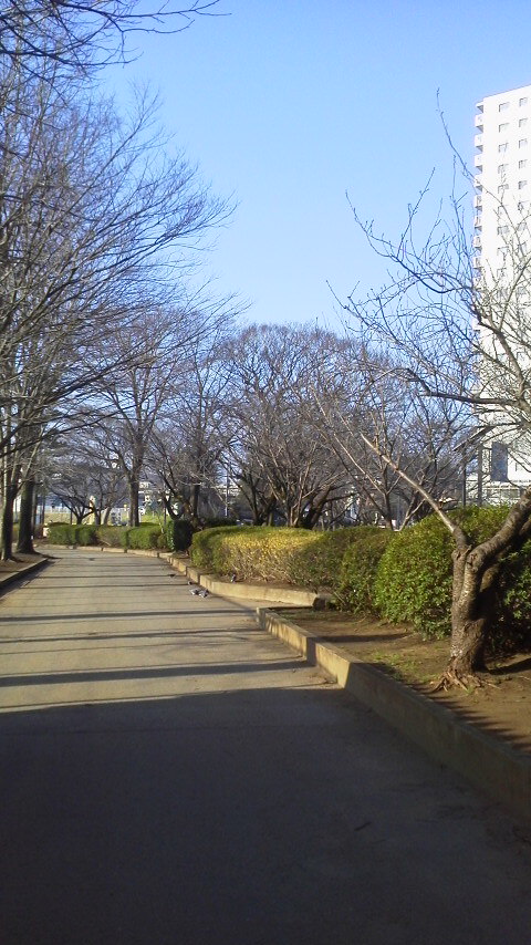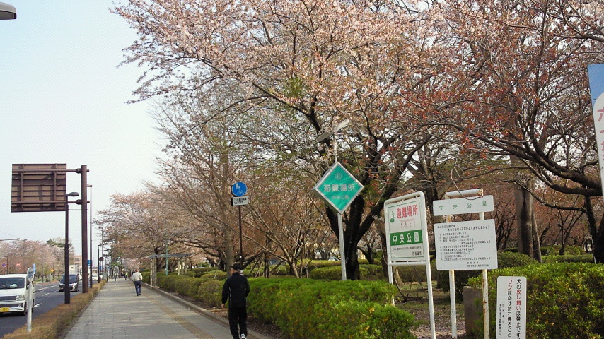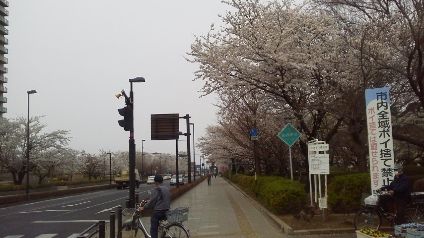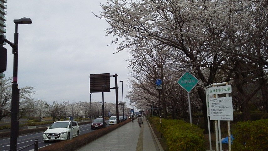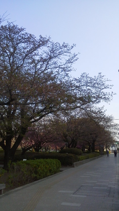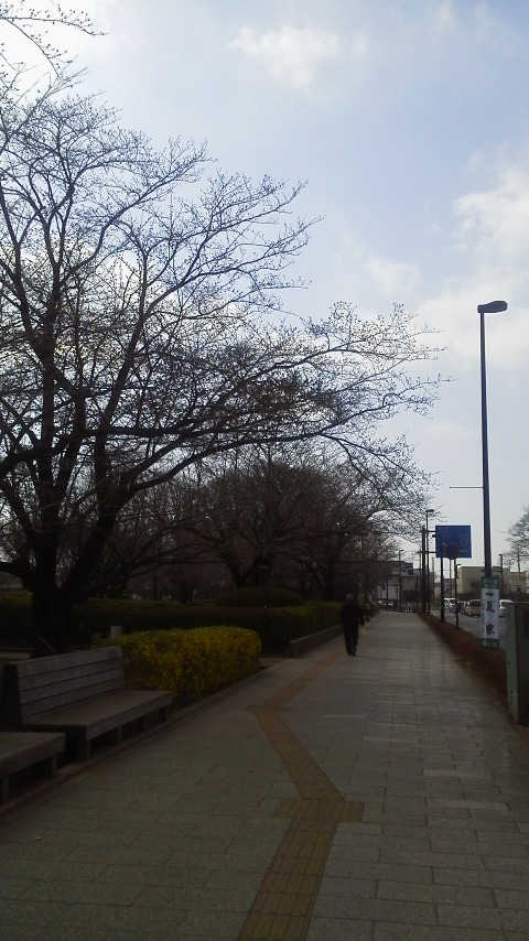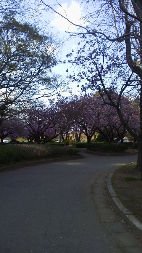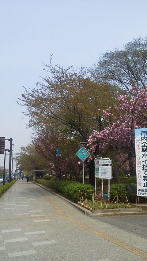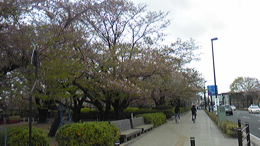 緑がかってきました。歩道に、花びらが・・・。本日は、肌寒いです。