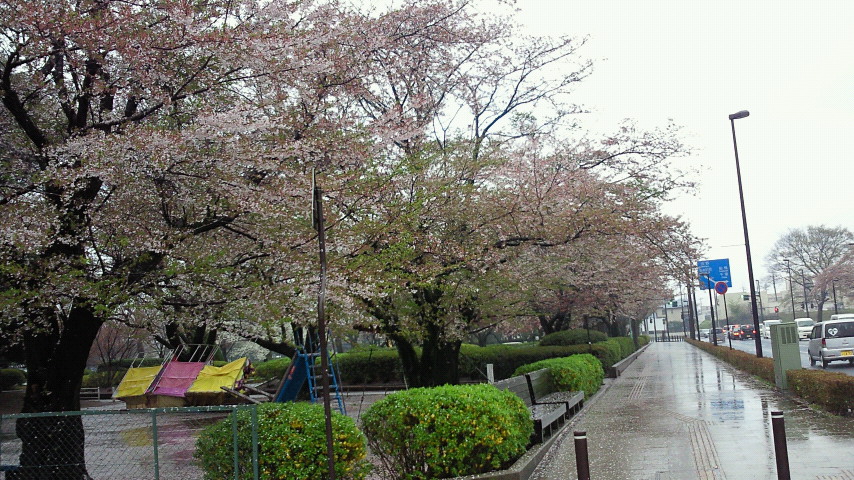 せっかくの満開が、雨のせいで花びらが散ってきています。