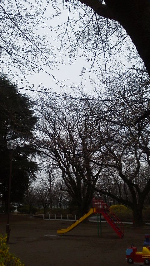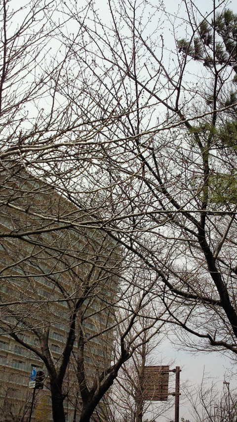 中央公園の桜の蕾は、まだ時間がかかりそう・・・。