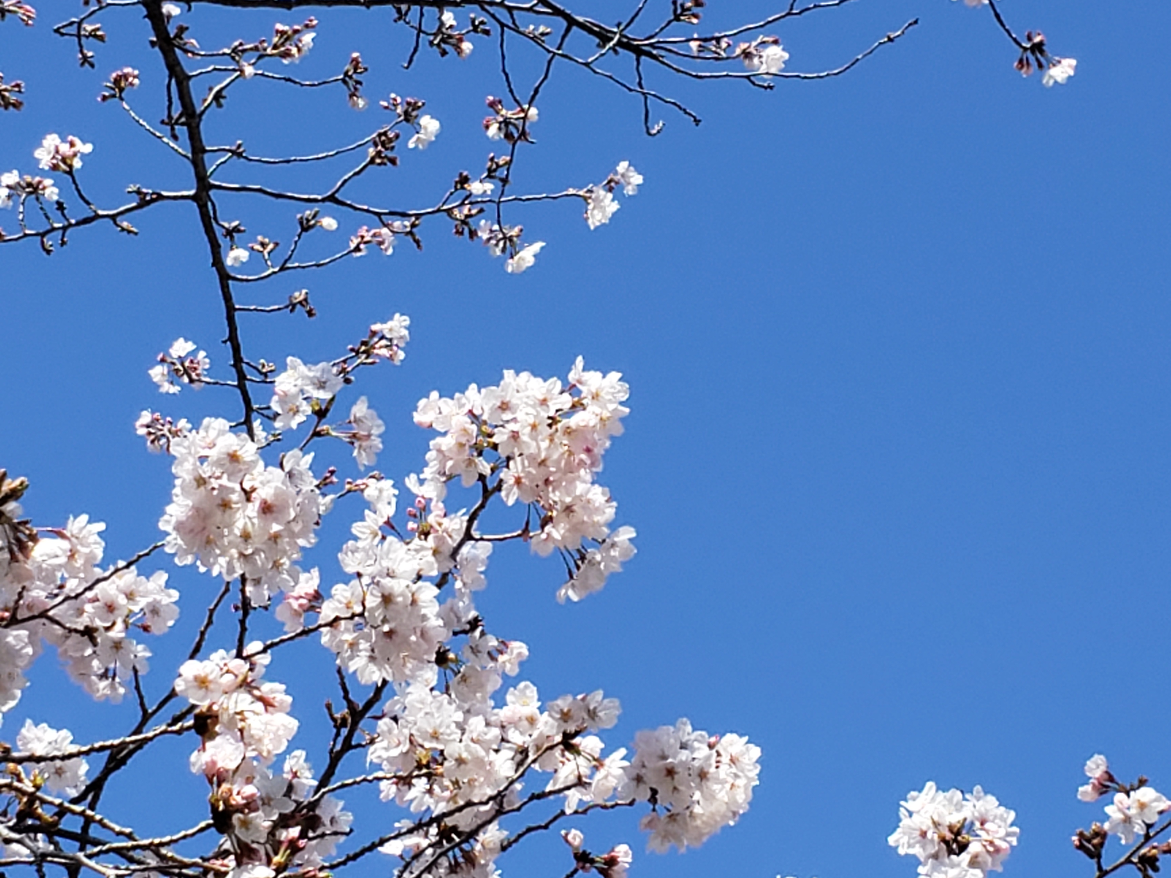 今日は暖かく陽射しもたっぷりで、桜もきれいです。